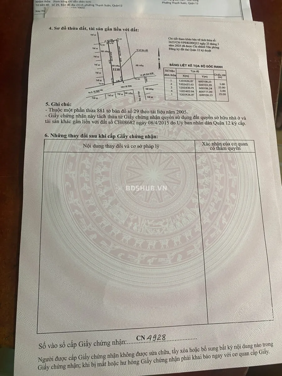 🏡 Bán 2 lô đất Thạnh Xuân 25, Quận 12 – 5x25m, giá chỉ 6.5 tỷ/lô – Vị trí đẹp, tiềm năng cao!