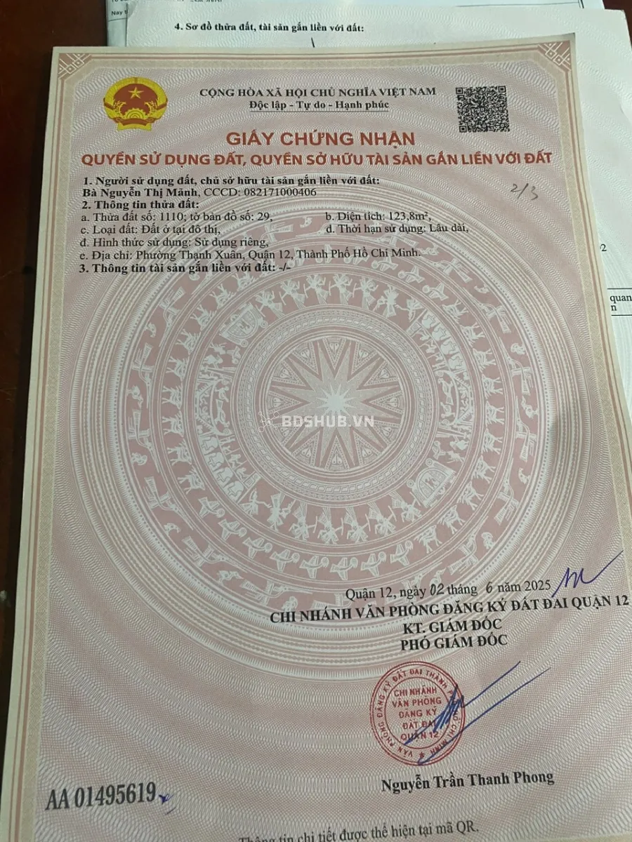 Cần bán gấp 2 lô đất liền kề nằm trên đường Thạnh Xuân 25, phường Thạnh Xuân, Quận 12, khu dân cư hiện hữu, hạ tầng hoàn thiện, pháp lý rõ ràng.