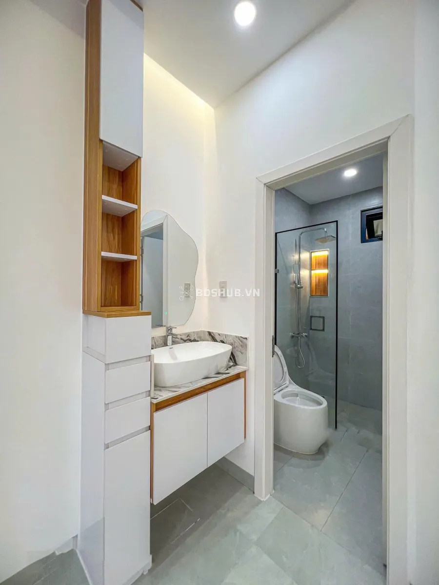 - Có sân trước 5m rộng phù hợp đậu ô tô hoặc sân sau 10m có thể trồng cây cảnh.